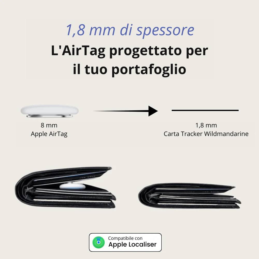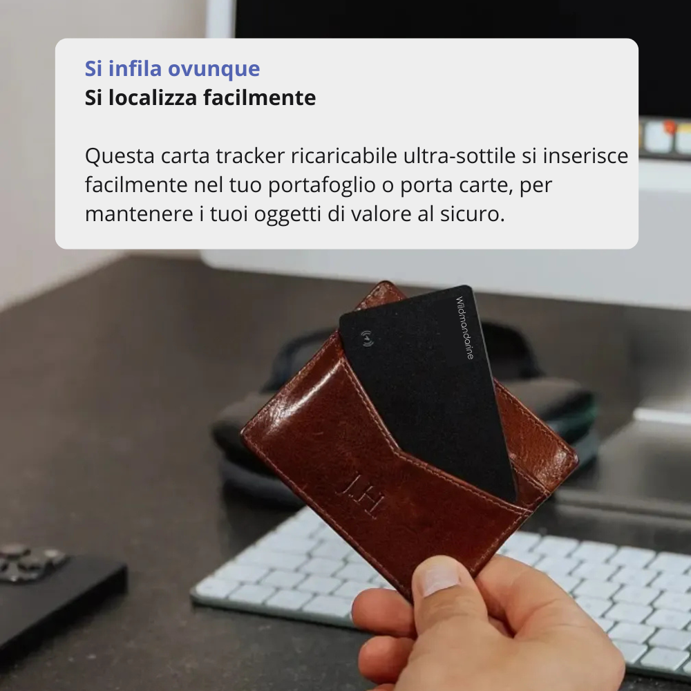 Basta scivolarla nel portafoglio. In caso di smarrimento, puoi consultare la sua posizione dal tuo iPhone o farla suonare per ritrovarla rapidamente.