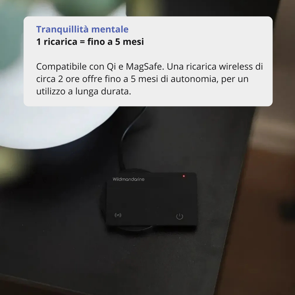 • Autonomia: Ricaricabile per induzione – fino a 5 mesi per carica